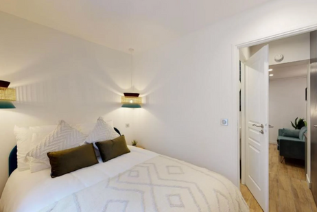 Located on the ground floor on a partially private and easily accessible courtyard. Composed of a living room with fitted kitchen, dining table, sofa corner and connected TV; a bedroom with a Queen size bed, large closets and connected TV; independent bathroom and a 2nd bedroom